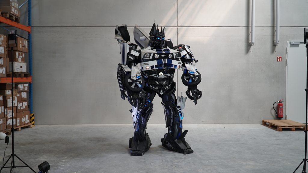 Unser imposanter Bluestripe Bot ist eines der ersten und meistgebuchten Kostüme in unserem Portfolio – seit über 10 Jahren zuverlässig im Einsatz. Mit einer beeindruckenden Höhe von 320 cm und einem Gewicht von 48 kg zieht er garantiert alle Blicke auf sich. Das Design ist inspiriert von den bekannten Filmen und erinnert an einen der den beliebten Charakter. Der Anzug überzeugt mit 200 integrierten LED-Leuchtmitteln sowie passenden Soundeffekten, die das Erlebnis perfekt abrunden. Ideal für große Events, Messen oder Shows – dieses Kostüm kombiniert Technik, Nostalgie und Bühnenpräsenz auf höchstem Niveau.
